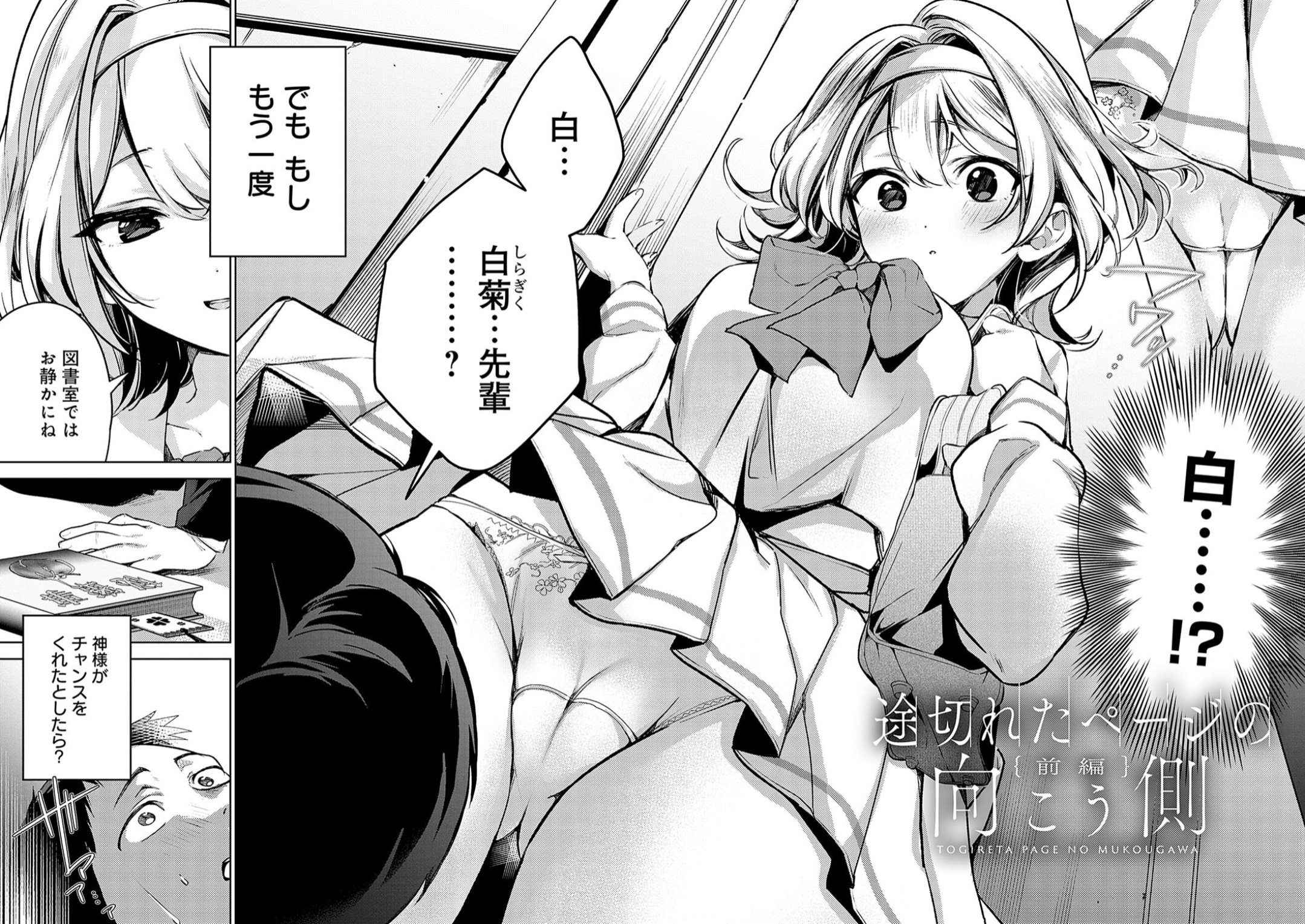 図書室に通う平永は、片想いの白菊先輩から「お気に入りの本」を手渡される。ところがそれは、まさかの官能小説。当たり障りのない感想を伝える平永。すると彼女は『私、ああいう大人な恋愛憧れちゃうな…』と話すと、耳元で『してみちゃう?こういうこと』と囁く。勇気を出せなかった平永はそのまま彼女と疎遠に。そして3年後、転校したはずの白菊先輩が再び現れて──。