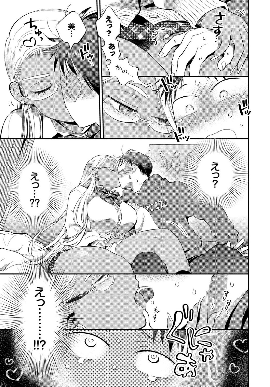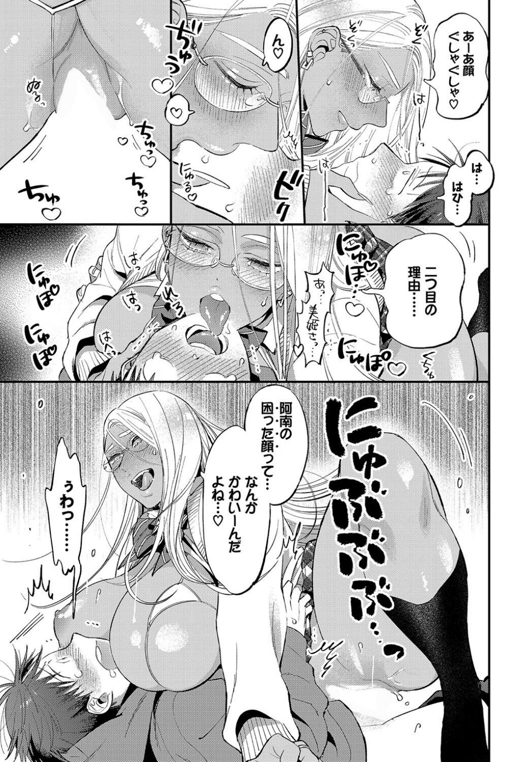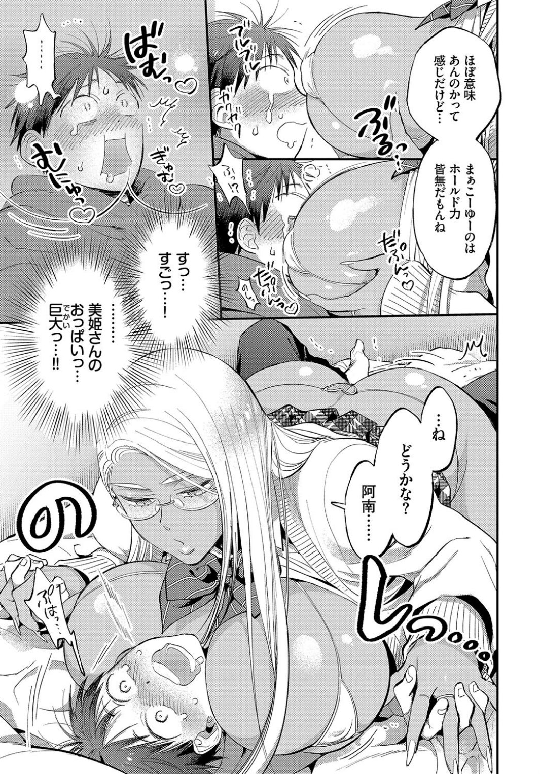 入学以来の憧れだった才女の黒ギャルJK・美姫とつきあうことになった阿南。今日はそんな彼女が自分の部屋に来る日。幸せをかみしめる阿南に「もっとこっち来なよ」とベッドに座らせる美姫。彼女は阿南の手を取り自分の太ももの上に置きキスをする。「そろそろ始めよっか」と制服のスカートをたくし上げる美姫。その下には阿南がプレゼントしたエロ下着を着ていて──。