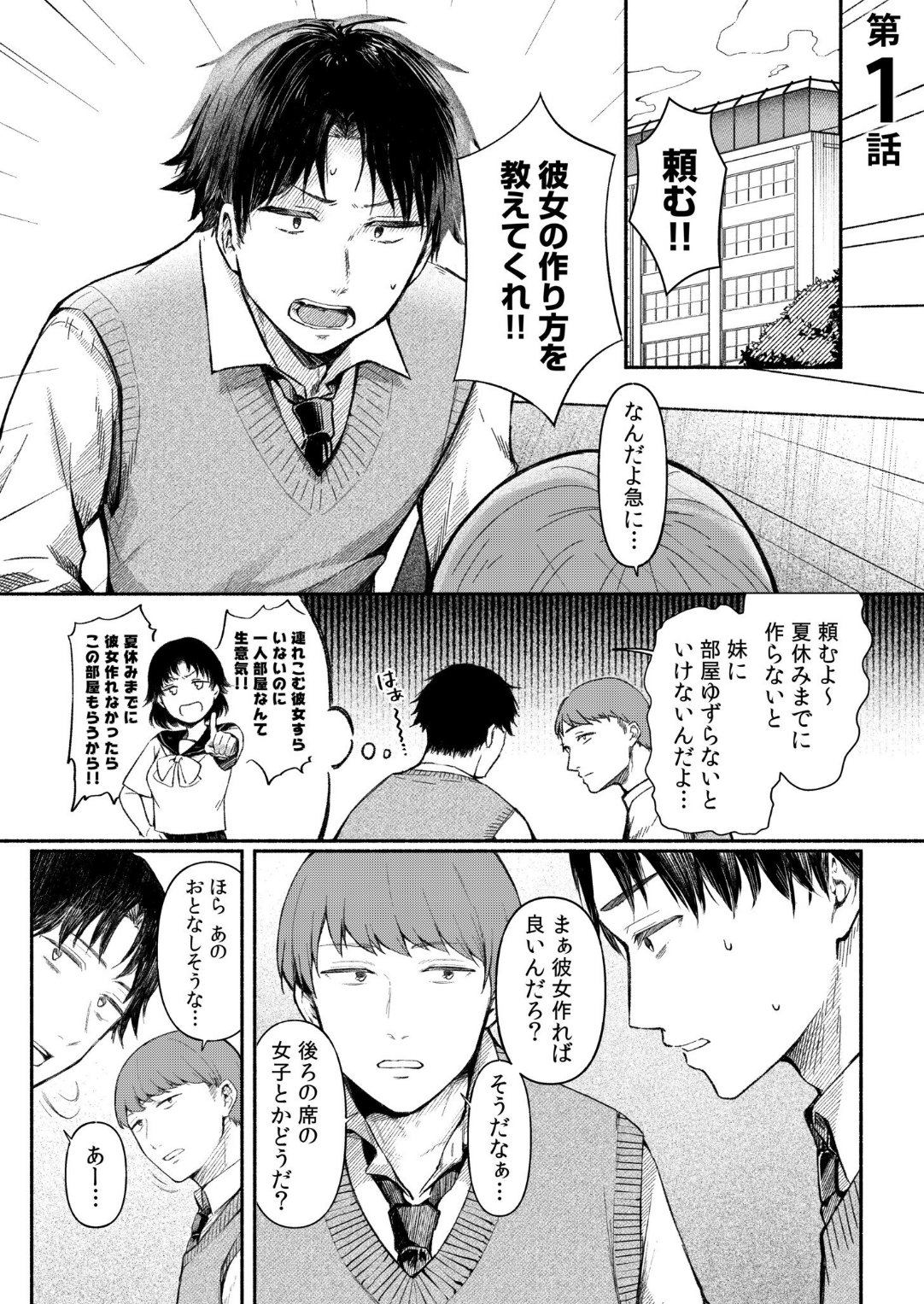 夏休みまでに彼女を作れなければ、妹に部屋を譲らなければならなくなった奏太。教室で友人に相談すると「後ろの席の女子とかどうだ?」と話し、同級生J○・井駒栞に「なんかコイツが君のこと好きらしいよ」と言ってしまう。しかし放課後、奏太は井駒さんから「私でよければ・・・」とまさかのOKを貰う。驚く奏太に井駒さんは抱きついて──。