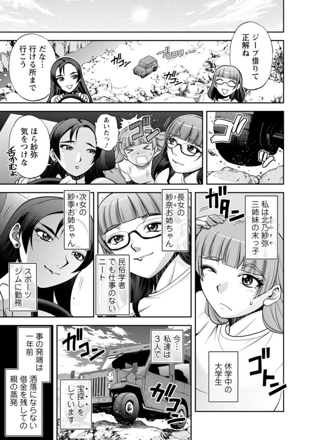姉2人と宝探しで親の借金を返済しているJDの紗弥。ある日、山の中を手分けして捜索し宝石トパーズを発見するが、下山途中で地主に見つかってしまう。「お願いします!何でもしますから!!」持ち出しを拒む地主に必死に頼み込むと、彼は紗弥の身体を見ながら“条件次第で考える” と笑みを浮かべる。何としても宝石を持ち帰りたい紗弥は──。