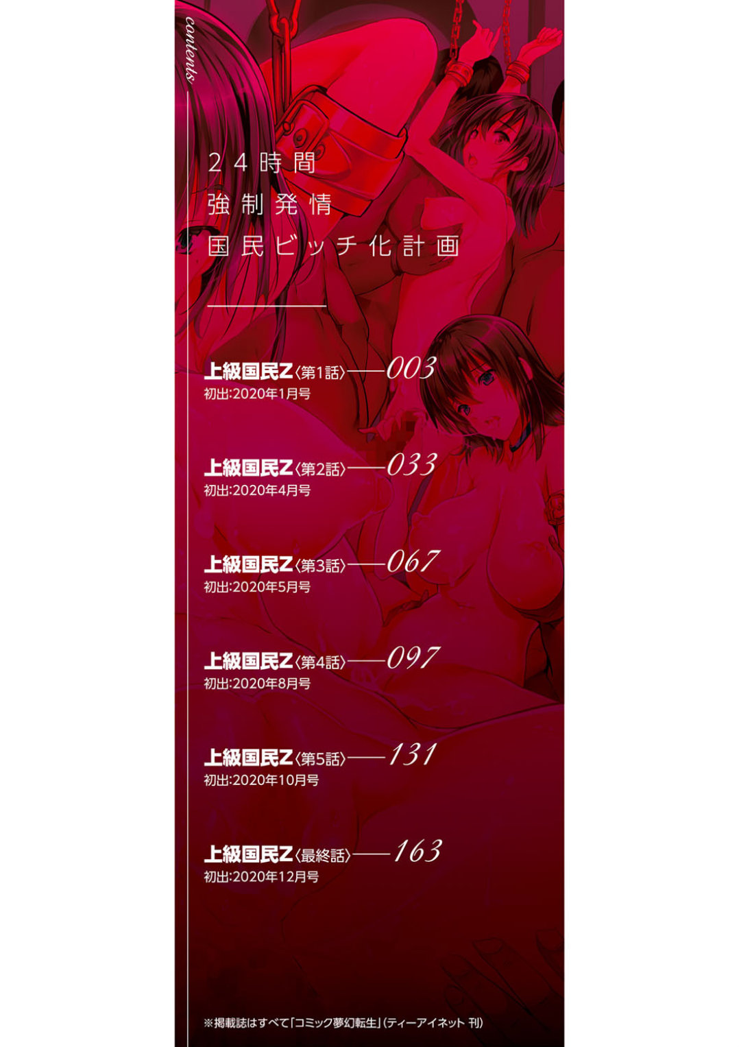 幼馴染の栄と一緒に登校するJ○の川崎真代。容姿端麗で成績優秀な学園のアイドルである彼女に、栄も密かに想いを寄せていた。放課後、栄の誕生日プレゼントを買いに向かう真代の前に、スーツ姿の男が現れる。「おめでとうございます。あなたは“ビッチ”に選ばれました」──数日後、真代は少女たちと共に全裸で立たされていて──。