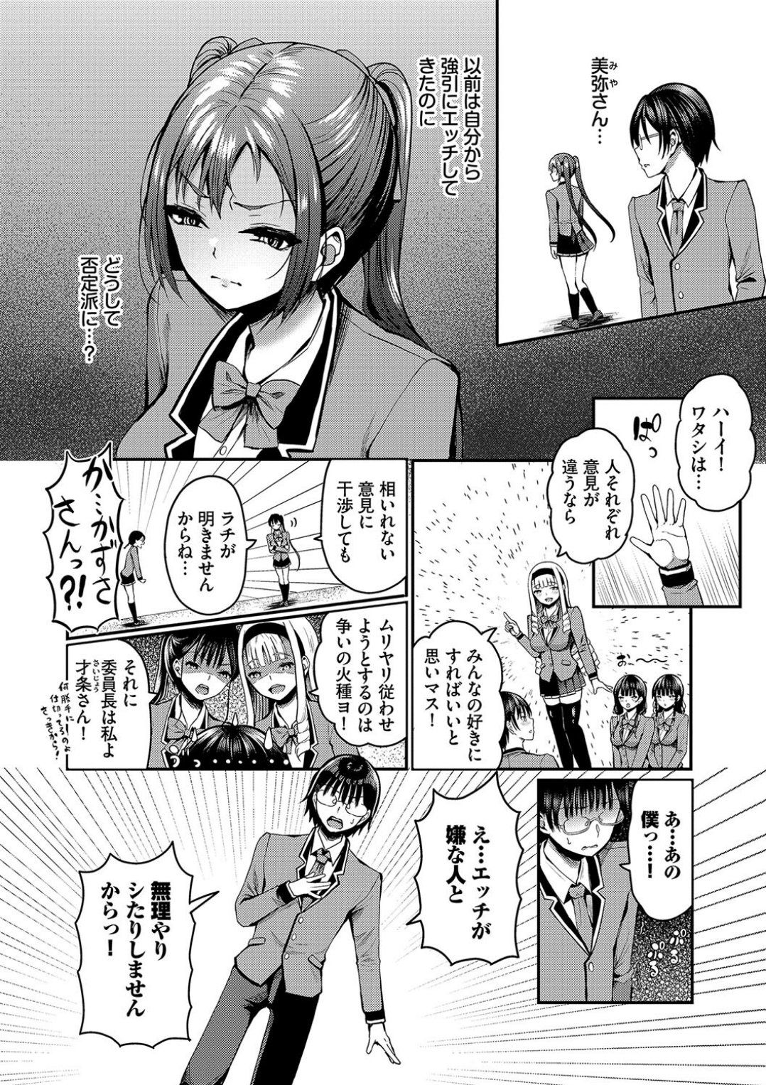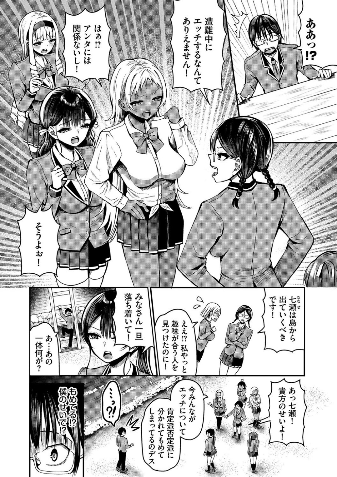 修学旅行中の事故で無人島に漂着し、同級生のJ○達とハーレム性活を送る裕海。そんなある日、彼女達は裕海とのエッチ肯定派と否定派で揉めてしまう。最終的にお互い干渉しない方針となり、賛成派は裕海と躊躇なくエッチするように。皆に搾り取られた裕海が温泉で休んでいると、全裸になった幼馴染の美弥に声をかけられる。反対派に所属する彼女だが、それには理由があって──。