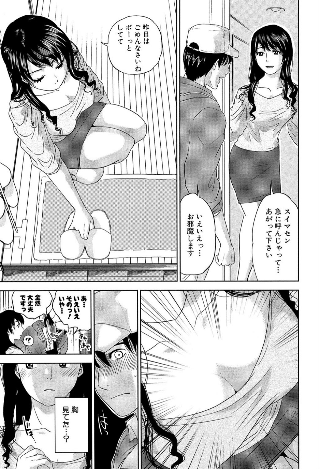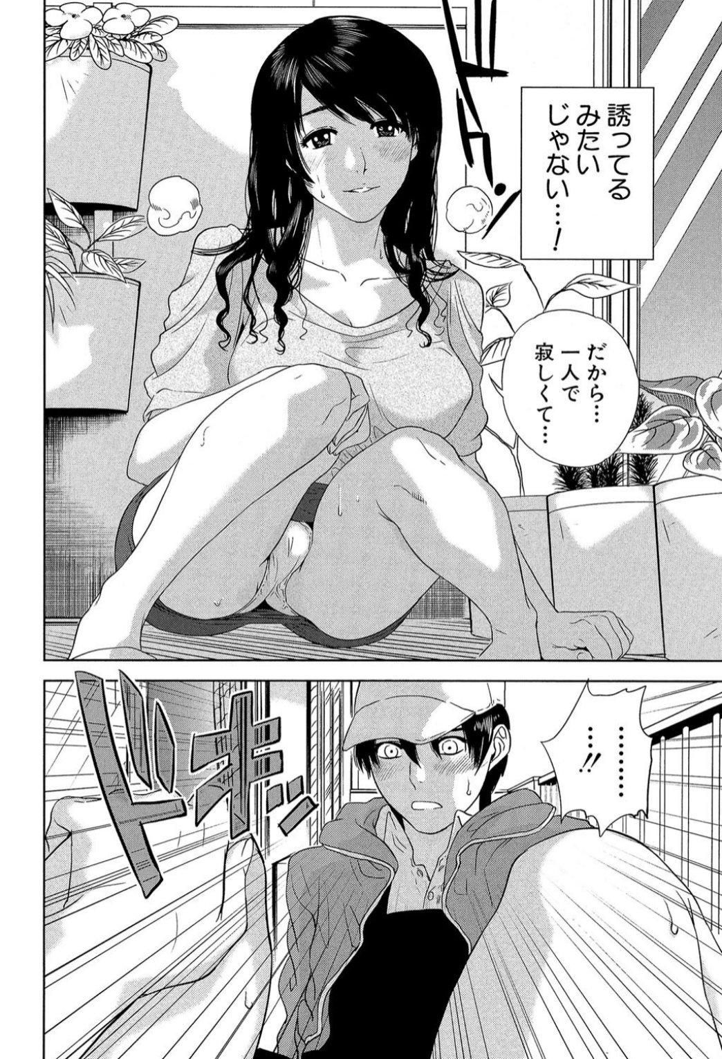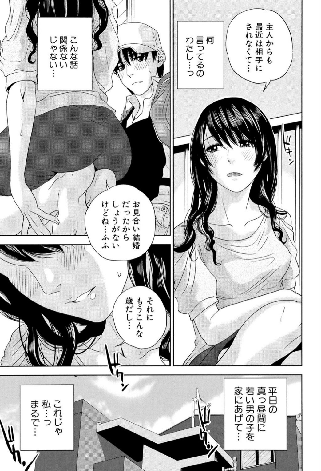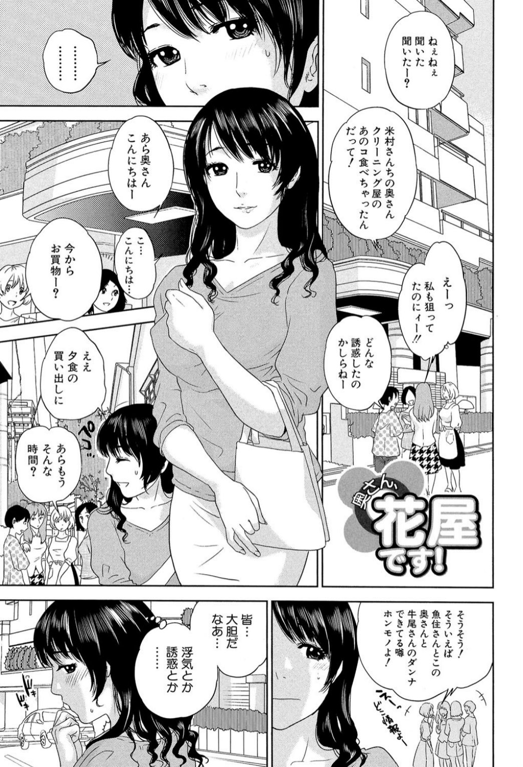 恋愛経験ゼロでお見合い結婚した、黒髪ロングヘアで清楚系の専業主婦。ある日、近所で花屋を営む年下男性と出会い、純朴で仕事熱心な彼に好感を抱く。夫に相手にされず寂しさを感じていた彼女は、ベランダの植物を見てもらう口実で自宅マンションに彼を招く。無防備な格好でバルコニーに出た彼女に、花屋の視線が向けられて──。
