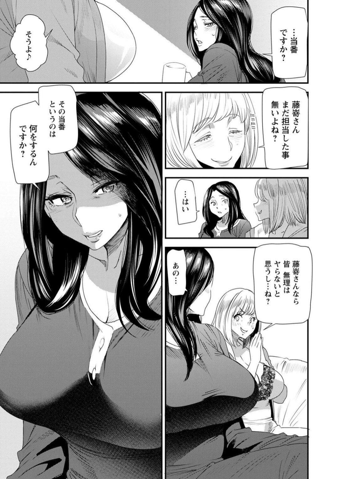 黒髪ロングヘアでムチムチ体型のアラフォー爆乳人妻・若葉。押しに弱い彼女は、引越し先のマンションで“性処理当番”を引き受けてしまう。当番初日、訪ねてきたのはお隣りのご主人。「ご近所の為だから・・・不倫じゃ無い・・・のよね?」そう自分に言い聞かせながら、10数年ぶりに夫以外の男を受け入れる。だが、セックスレスで持て余す身体は次第にその役割に馴染んでいき──。