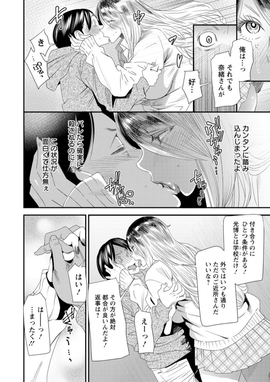 元ヤン中卒の白ギャルで、茶髪ロングヘアに爆乳のアラサー人妻・奈緒。定時制に通う21歳の光博は、近所に住む彼女と同級生に。だが学園生活を送るうち、授業の一環で“特別な実習”をすることになる。「あーっ!もう!!ウチらもヤるか!」陰キャ童貞の光博とペアになった奈緒は、彼のジャージを脱がして──。